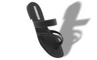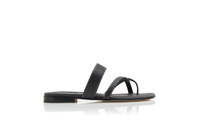 Black calf leather open toe flat sandals featuring crossover straps with contrast stitching and flat stacked heel. Upper: 100% calf leather. Sole: 100% calf leather. Lining: 100% kid leather. Heel measures 10 mm. Italian sizing. Made in Italy. Product ID: 120-1350-0001