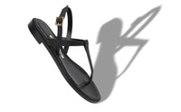 Black Calf Leather Flat Sandals