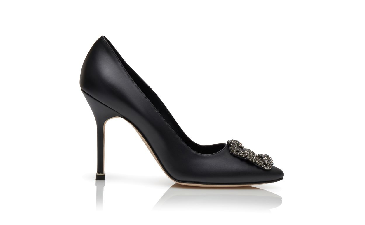 Black Calf Leather Jewel Buckle Pumps