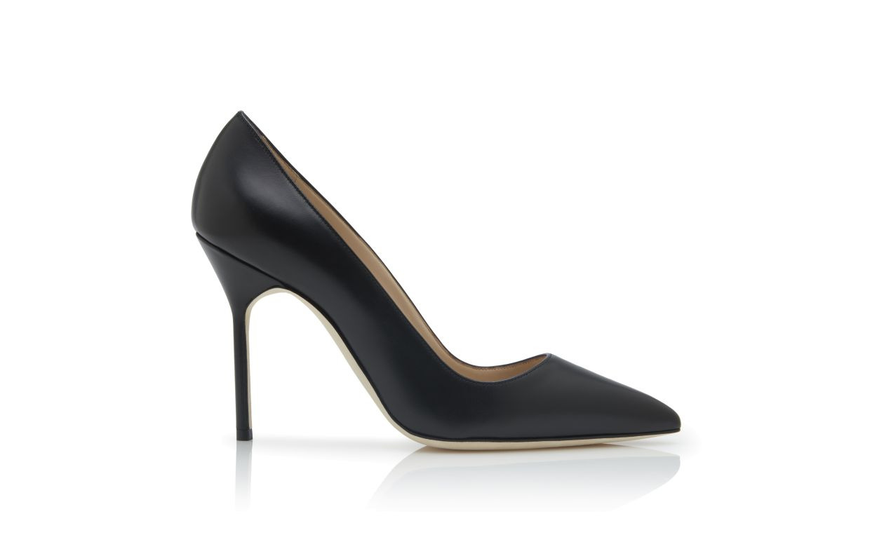 Black Calf Leather Pointed Toe Pumps