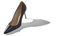Black calf leather pumps with pointed toe and stiletto high heel. Upper: 100% calf leather. Sole: 100% cow leather. Lining: 100% goat skin. Heel measures 90mm. Italian sizing. Made in Italy. Product ID: 9XX-0511-0009