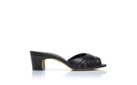 Black Nappa Leather Ruched Open Toe Mules