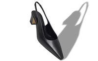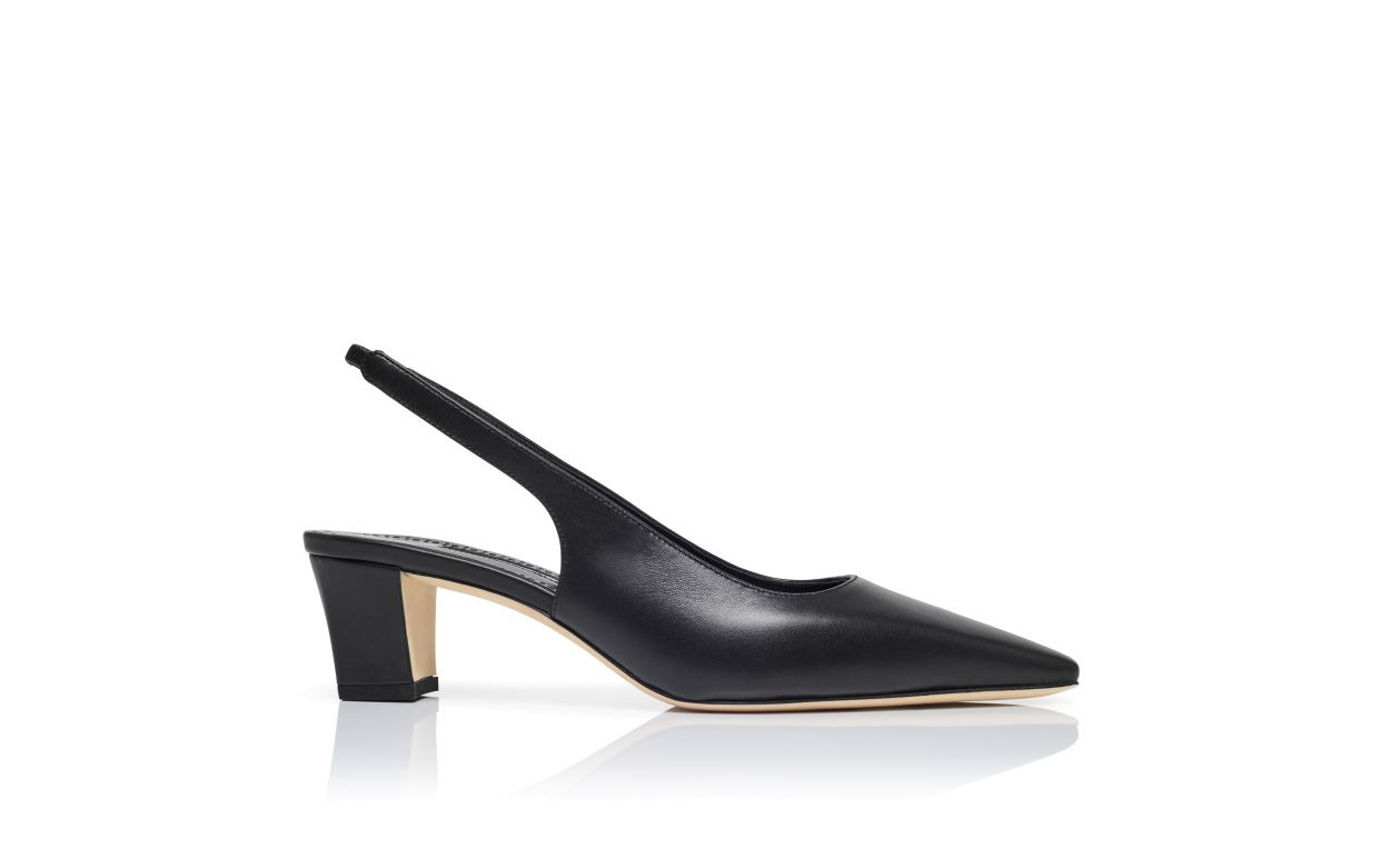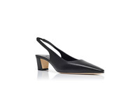 Black nappa leather pointed toe slingback pumps featuring elasticated slingback design and block low heel. Upper:100% lamb nappa.Sole:100% calf leather.Lining:100% kid leather.Heel measures:50 mm.Italian sizing. Made in Italy. Product ID: 325-3128-0002
