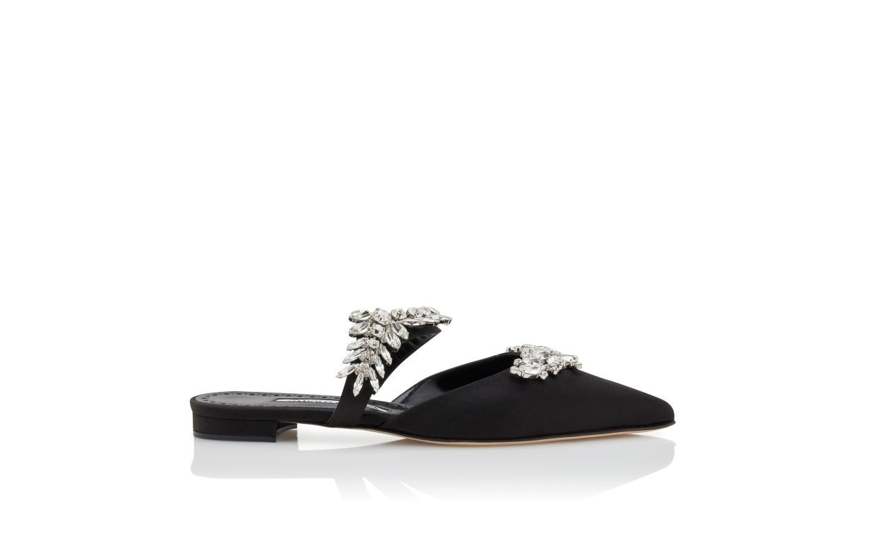 Black Satin Crystal Embellished Flat Mules