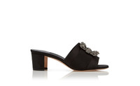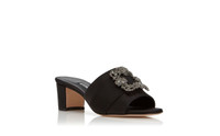 Black Satin Jewel Buckle Mules