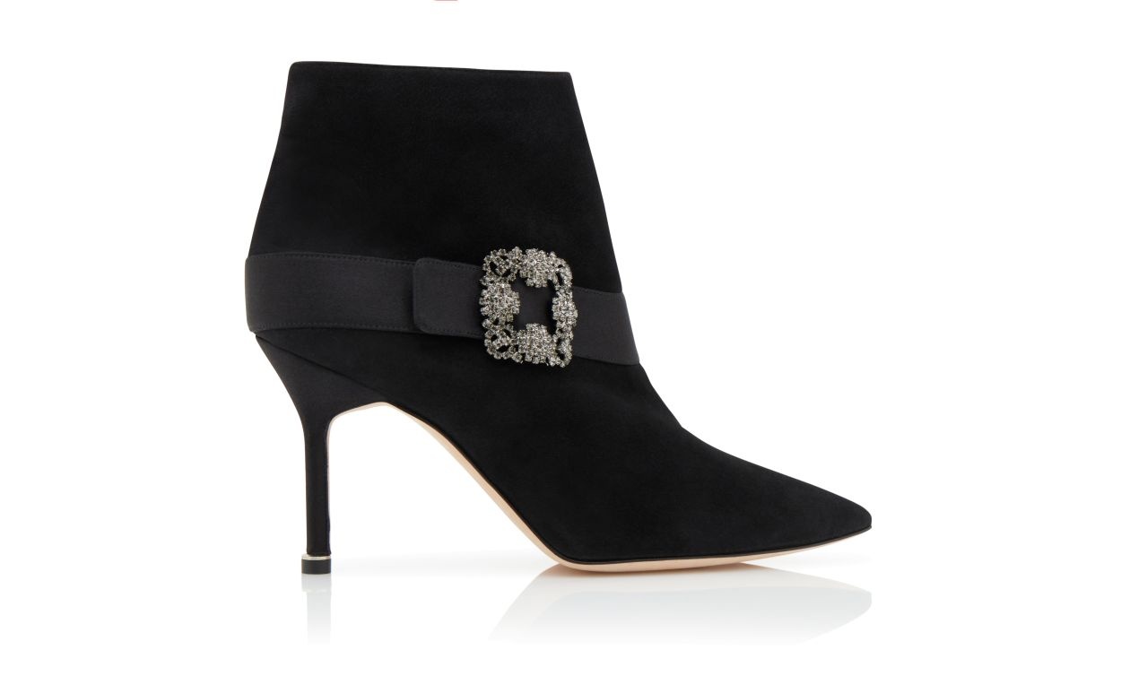 Black Suede Jewel Buckle Ankle Boots
