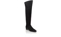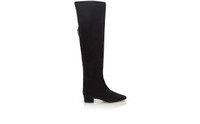 Black satin pointed toe knee high boots featuring embroidered gold cascading leaf design. Finished with flared mid heel. Upper:100% calf leather.Sole:100% calf leather.Lining:100% kid leather.Heel measures:30 mm.Italian sizing. Made in Italy. Product ID: 225-1813-0001