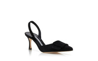 Black suede slingback pumps featuring pointed toe, decorative buckle detail, elasticated slingback strap and stiletto mid heel. Upper: 100% calf suede. Sole: 100% cow leather. Lining: 100% goat skin. Heel measures 70mm. Italian sizing. Made in Italy. Product ID: 219-0182-0012
