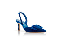 Blue velvet slingback pointed toe pumps featuring decorative buckle detail, elasticated strap and stiletto mid heel. Upper: 100% velvet. Sole: 100% calf leather. Lining: 100% kid leather. Heel measures 70 mm. Italian sizing. Made in Italy. Product ID: 324-2861-0001