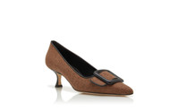 Brown and Black Wool Buckle Detail Pumps