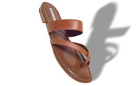 Brown Nappa Leather Crossover Flat Sandals