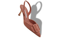 Brown suede pointed toe pumps featuring decorative buckle detail, elasticated slingback design and stiletto mid heel. Upper: 100% kid suede. Sole: 100% calf leather. Lining: 100% kid leather. Heel measures 70 mm. Italian sizing. Made in Italy. Product ID: 219-0182-0112