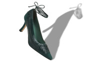 Dark green patent leather pointed toe pumps featuring decorative ankle-tie closure, spiked patent leather design details and angular high heel. Upper:60% patent calf, 40% kid suede.Sole:100% calf leather.Lining:100% kid leather.Heel measures: 90 mm.Italian sizing. Made in Italy. Product ID: 325-3007-0001