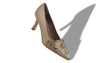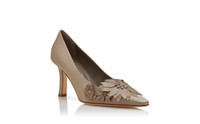 Dark grey crepe satin pointed toe pumps featuring laser-cut floral design and angular high heel. Upper: 100% silk.Sole:100% calf leather.Lining:100% kid leather.Heel measures:90 mm.Italian sizing. Made in Italy. Product ID: 325-3070-0001