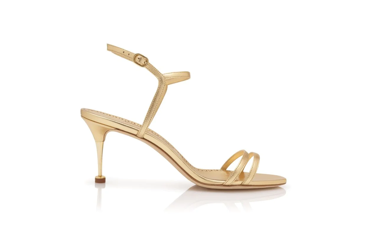 Gold Nappa Leather Ankle Strap Sandals
