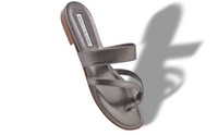 Graphite nappa leather open toe flat sandals featuring crossover straps with toe stem, instep strap and flat stacked heel. Upper: 100% lamb nappa. Sole: 100% calf leather. Lining: 100% kid leather. Heel measures 10 mm. Italian sizing. Made in Italy. Product ID: 223-1554-0005