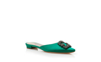 Green Satin Jewel Buckle Flat Mules