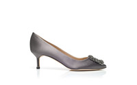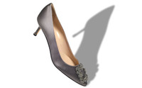 Grey Satin Jewel Buckle Pumps