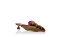 Khaki Silk Rosettes Detail Mules
