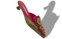Khaki silk almond toe mules adorned with handmade rosette embellishments and red grosgrain edging. Finished with a flared block low heel. Upper:90% silk, 10% linen.Sole:100% calf leather.Lining:100% goat leather.Heel measures:30 mm.Italian sizing. Made in Italy. Product ID: 425-2204-0004