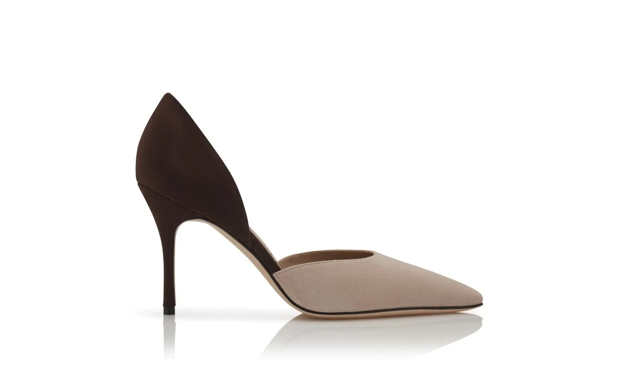 Light Beige and Brown Suede D'Orsay Pumps