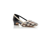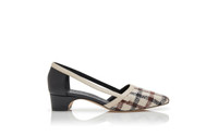 Light beige wool round toe pumps featuring cream calf leather straps, tartan toe cap and block low heel. Upper:90% wool, 10% calf leather.Sole:100% calf leather.Lining:100% kid leather.Heel measures:30 mm. Italian sizing. Made in Italy. Product ID: 325-3043-0001