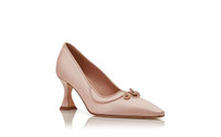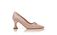 Light pink satin pointed toe pumps featuring jewel embellished design details and flared mid heel. Upper: 72% viscose, 28% silk. Sole: 100% calf leather. Lining: 100% kid leather. Heel measures 70 mm. Italian sizing. Made in Italy. Product ID: 225-1948-0001
