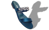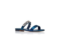Navy Blue Satin Embellished Flat Sandals