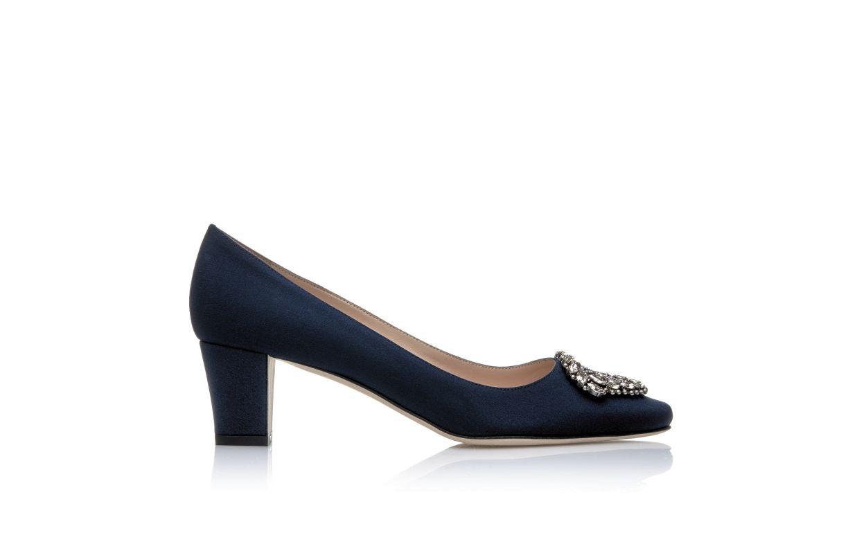 Navy Crêpe De Chine Jewel Buckle Pumps