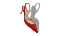 Red nappa leather pointed toe slingback pumps featuring stiletto mid heel. Upper: 100% lamb nappa. Sole: 100% calf leather. Lining: 100% kid leather. Heel measures 70 mm. Italian sizing. Made in Italy. Product ID: 9XX-0757-0020