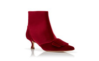 Red Velvet Buckle Detail Ankle Boots