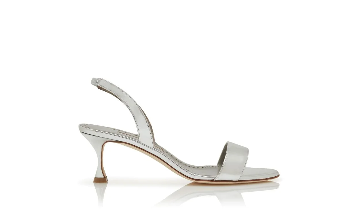 Silver Calf Leather Slingback Sandals