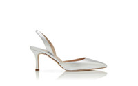 Silver nappa leather almond toe slingback pumps finished with stiletto mid heel. Upper: 100% lamb nappa. Sole: 100% calf leather. Lining: 100% kid leather. Heel measures 70mm. Italian sizing. Made in Italy. Product ID: 223-1561-0002