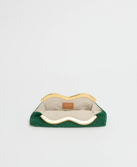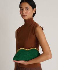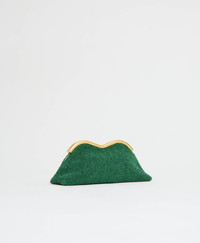The Baci Clutch is crafted from textured raffia with a soft construction and metal exposed wave like frame. Lined with Italian canvas, it features a single compartment that fits all phones. Details Width: 11 in / 28 cm Height: 4.7 in / 12 cm Depth: 4 in / 10 cm Composition: Italian Raffia blend Lining: Italian Canvas Made in Italy Materials Our textured raffia is woven in Tuscany, Italy. The texture has a boucle like feel that creates a round and plush body. Avoid abrasive surfaces and sharp objects that can snag the woven fabric. Avoid long exposure to direct light or artificial heat. Spot clean with a damp clean cloth.
