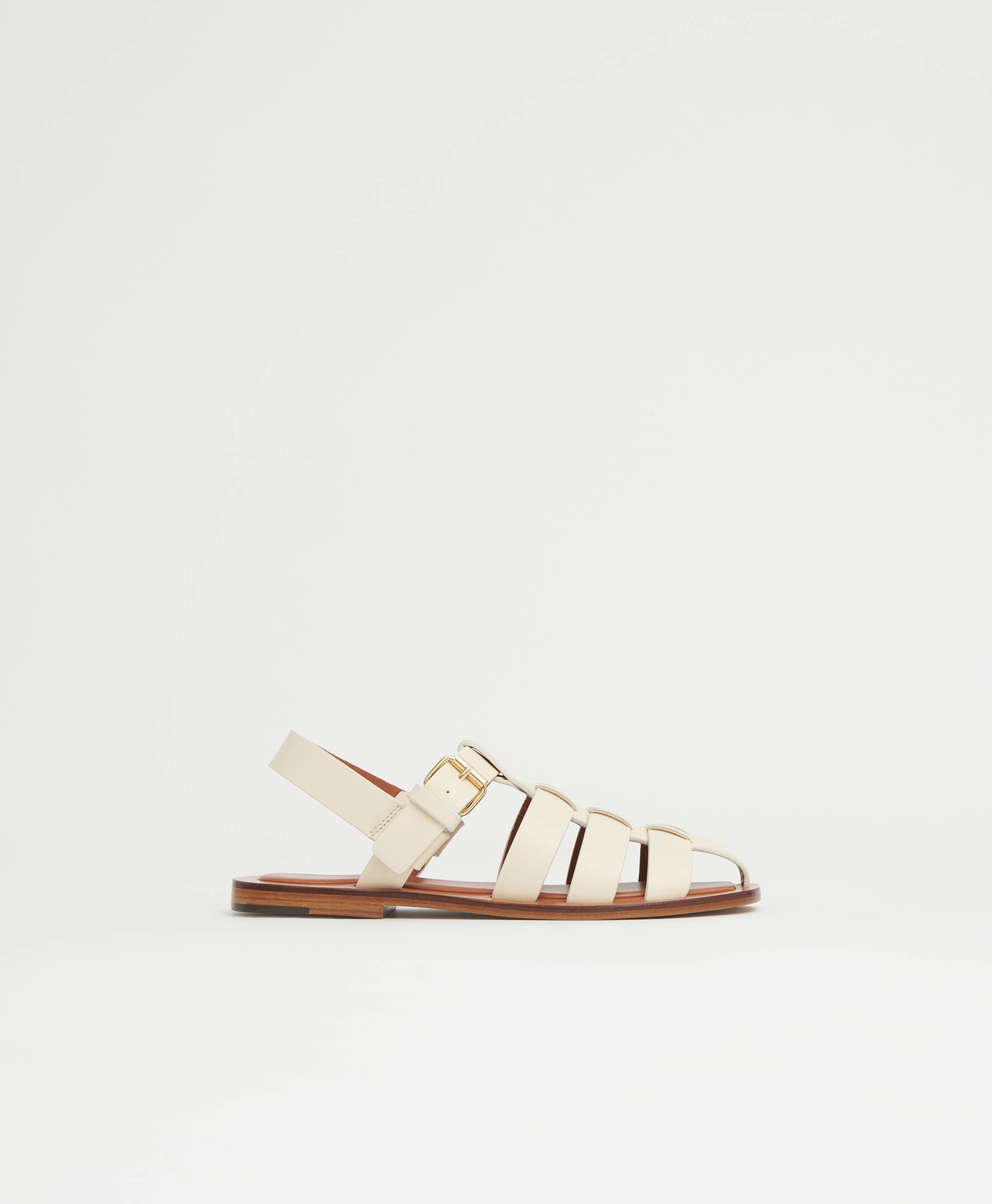 The Fisherman Sandal, made from 100% Italian leather, features interwoven straps that create a cage like upper, a padded insole, flexible sole, back strap with buckle, and a rounded square toe. Details Heel Height: .47in / 12mm Composition: 100% Italian Smooth Calf Leather Lining: 100% Italian Lambskin Leather Made in Italy Sizing Please reference our Size Guide to find your size. Materials Our Italian Calf Leather is a smooth, refined leather with a polished finishing. Although recognized for its longevity, we recommend occasionally treating this leather with a leather conditioner, which will help keep it hydrated.