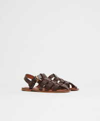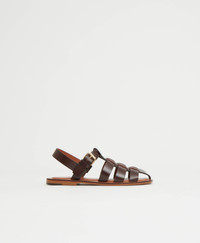 The Fisherman Sandal, made from 100% Italian leather, features interwoven straps that create a cage like upper, a padded insole, flexible sole, back strap with buckle, and a rounded square toe. Details Heel Height: .47in / 12mm Composition: 100% Italian Smooth Calf Leather Lining: 100% Italian Lambskin Leather Made in Italy Sizing Please reference our Size Guide to find your size. Materials Our Italian Calf Leather is a smooth, refined leather with a polished finishing. Although recognized for its longevity, we recommend occasionally treating this leather with a leather conditioner, which will help keep it hydrated.