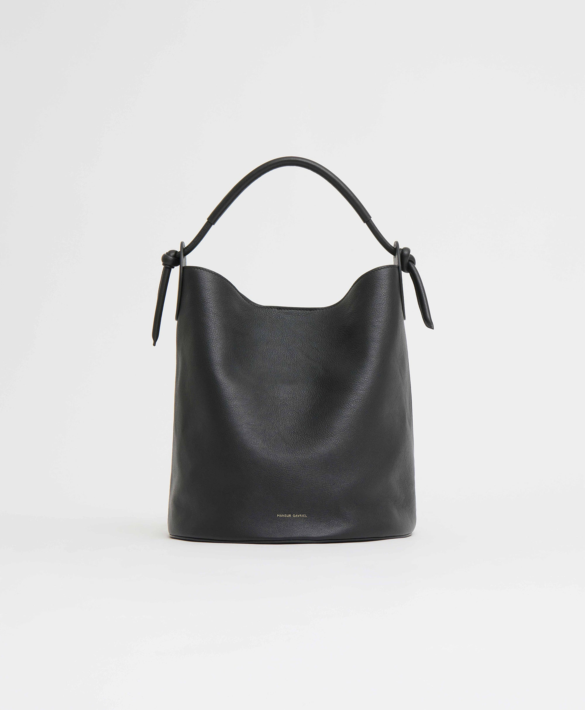 Our Fortuna family expands with the new full sized Bucket Bag, crafted from soft Italian calf leather and suede. This style features signature knotted details, a magnetic closure, a tubular shoulder strap, and a wide circular base designed to comfortably hold all your essentials. Details Width: Base circular diameter: 10.6 in / 27 cm Height: 11.8 in / 30 cm Strap drop: 11 in / 28 cm Weight: 1 lb 8.9 oz Composition: 100% Italian Soft Calf Leather Lining: 100% Italian Calf Suede Made in Italy Materials Our Italian Tumbled Calfskin is a textured, soft leather with a supple hand feel. Although recognized for its longevity, it is still prone to occasional scratching if not handled with proper care. We recommend occasionally treating this leather with a leather conditioner, which will help keep it hydrated. Avoid exposure to abrasive surfaces and always taking care to store the item properly in its dust bag when not in use.