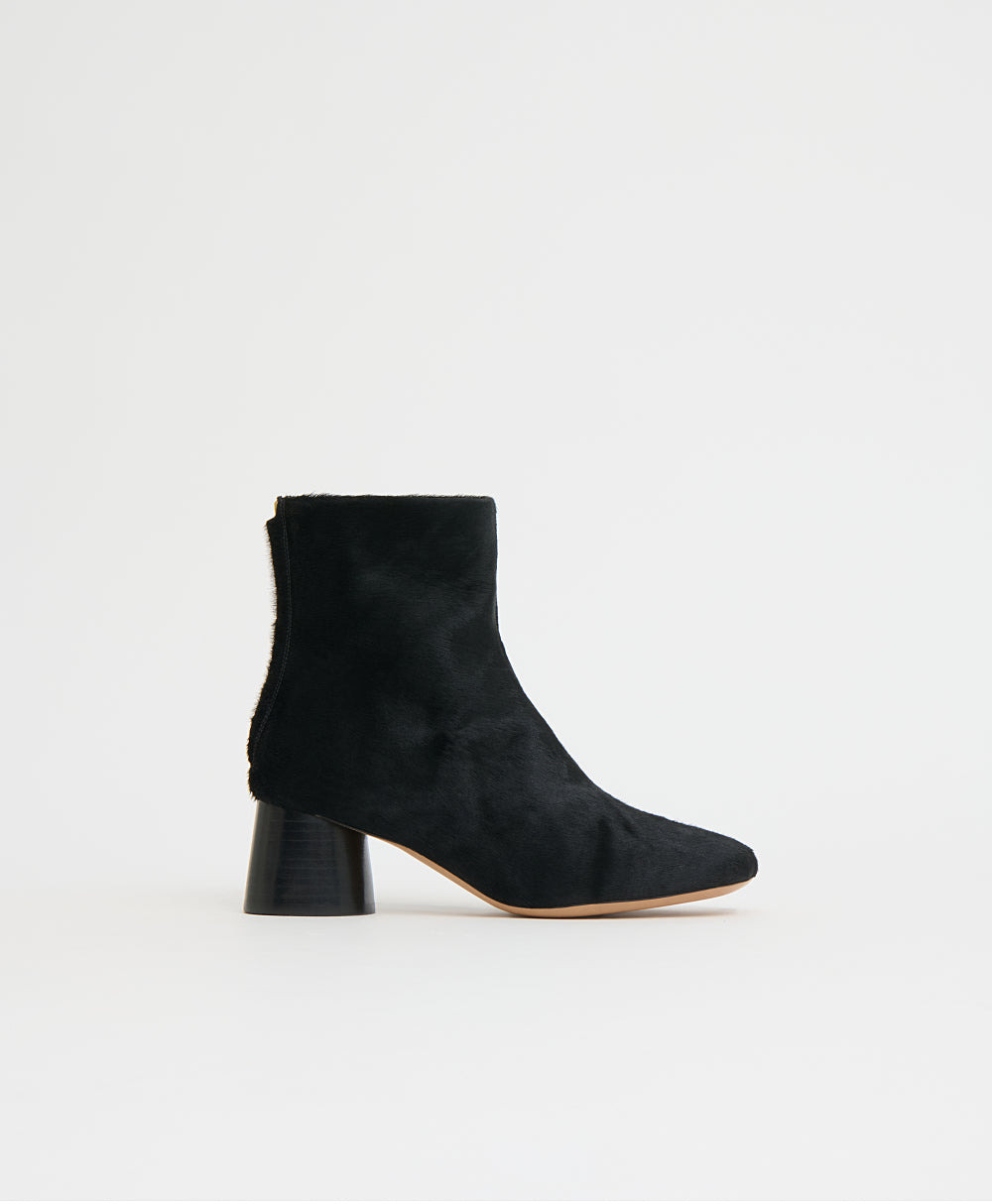 In textured calf hair, the Glove Boot is a modern classic crafted with an Italian lambskin lining. It molds to your foot, offering a custom fit. The striated short heel adds a subtle lift, making it versatile for any occasion. Details Heel height: 0.78 in/ 2 cm Composition: 100% Italian Dyed Haircalf Lining: 100% Italian Lambskin Leather Made in Portugal Materials Hair calf leather that has been dyed and treated so its soft and with a light sheen. While not in use, store in the dust bag for proper ventilation. Gently brush with the direction of the hair to remove dry debris. Wipe clean with a damp cloth and then pat dry.