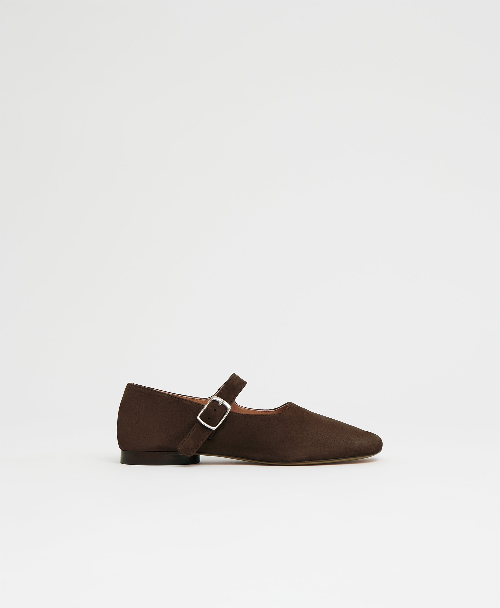 The Glove Mary Jane is made from ultra soft Italian suede leather, offering a luxurious fit. With a padded lambskin interior for comfort and an asymmetrical toe, it’s finished with a bold, thick buckle strap for effortless closure. Details Heel Height: 0.40 in / 10 mm Toe Vamp: 4.3 in / 11 cm Composition: 100% Italian Calf Suede Lining: 100% Italian Lambskin Leather Made in Portugal Sizing Please reference our Size Guide to find your size. Materials Our Italian Suede Leather is soft with a velvet-like finish. Darker and vibrantly colored suedes may stain lighter colored materials if placed in close contact. Pre-treat the leather with a suede protectant and avoid exposure to liquids. Occasionally treat the leather with a suede brush to help smooth any marks or indentations.