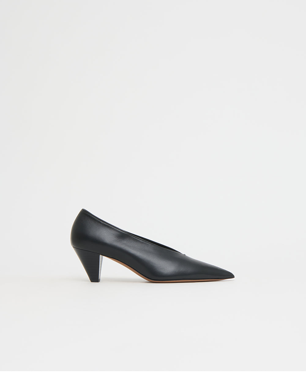 Sleek and sculptural, the Kiki Heel is defined by its razor-sharp silhouette, crafted with exceptional quality and featuring a pointed toe, a refined V-cut vamp, and a striated two-inch heel. Details Heel height: 2.2 in / 55 mm / 5.5 cm Composition: 100% Italian Lambskin Leather Made in Italy Materials Lambskin is known for its buttery soft and delicate touch. Thinner and softer than our previous nappa (saint top) material, Over time the leather becomes softer and smoother. “Second Skin Feeling”. Oil based tanning process that adds to the soft and beautiful hand-feel. Known for its quality and luxurious look. Do not expose to water. If leather becomes wet, immediately pat dry with a clean, soft cloth. While not in use, store in the dust bag for proper ventilation. Can be treated with a small amount of colorless shoe polish for soft leathers, with a soft clean cloth.