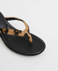 The Mari Sandal is our new timeless silhouette. Designed in Italian calf hair and 100% Italian lambskin leather, the Mari Sandal offers a striated short heel that adds a subtle lift. This versatile style features a thong strap, padded insole, and sole grips for lasting comfort. Details Heel Height: 2in / 5cm Composition: 100% Italian Calf Hair with Leopard Print Lining: 100% Italian Lambskin Leather Made in Italy Sizing Please reference our Size Guide to find your size. Materials Ultra soft with a light sheen, our hair calf leather adds a timeless texture. While not in use, store in the dust bag for proper ventilation. Gently brush with the direction of the hair to remove dry debris and wipe clean with a damp cloth and then pat dry.