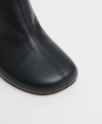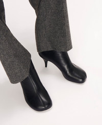 Our everyday heeled boot, thoughtfully crafted in soft Italian lambskin or rich haircalf leather. The Maria features a sculptural, striated three-inch heel, a modern rounded square toe, and a sleek zippered back closure. Offered in three seasonal neutrals, it’s a refined staple designed for elevated daily wear. Details Heel Height: 3.9 in / 10 cm Shaft Height: 3.1 in / 80 mm / 8 cm Composition: 100% Italian Lambskin Leather Made in Italy Materials Known for its soft, velvety hand feel with a beautiful variation in color from the natural nap of the suede. Double Dye process for a more vibrant and saturated color. Leather is treated to help prevent color transfer and dust. Lightweight that lends to its beautiful drape. Do not expose to water. If leather becomes wet, immediately pat dry with a clean, soft cloth. Take care when wearing dark colors that might transfer onto the suede. Take care when wearing light colors that suede color might transfer. Clean with a suede brush to remove dry dirt and scuff marks. This will also help revive the natural nap of the suede. For major stains, Professional Leather clean. While not in use, lightly stuff the bag to keep its shape and store in the dust bag for proper ventilation.