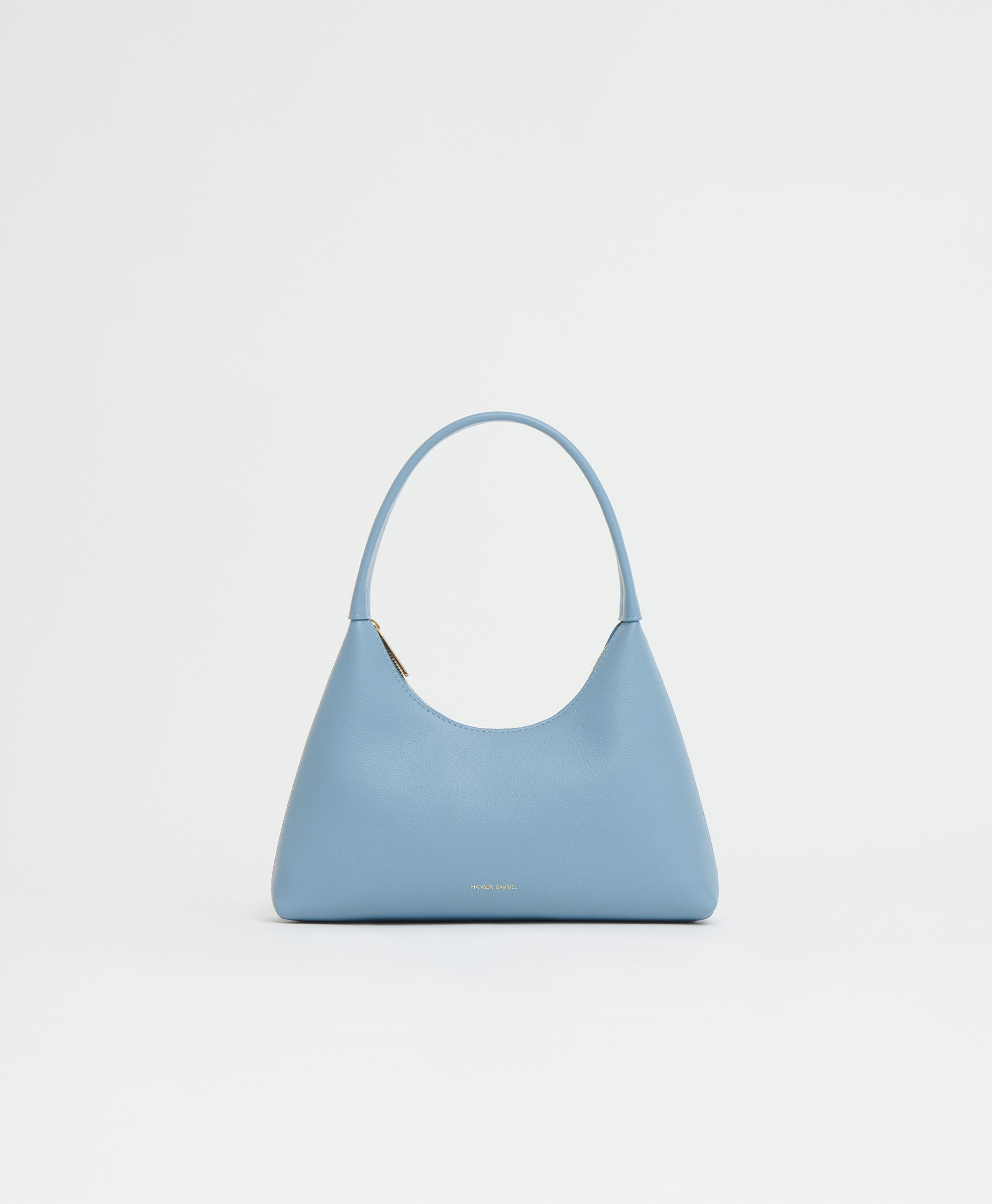 Crafted in Italy, our Mini Candy Bag is defined by its graphic silhouette with a circular strap that allows for it to be worn over the shoulder or carried by hand. The mini sized style is finished with zip top closure. Details Width at Top: 7.08 in / 18cm Width at base: 9.5 in / 24cm Height: 4.7in / 12cm *from center zip to base Depth: Bottom: 2.2 in / 5.5cm , Top: 1.4 in / 3.5cm Handle drop: 6.7in / 17cm Weight: 7.1 oz Composition: 100% Italian Soft Calf Leather Lining: 100% Italian Calf Suede Made in Italy Materials Our Italian tumbled calfskin is a classic, grained leather with a soft handfeel. Although recognized for its longevity, it is still prone to occasional scratching if not handled with proper care. We recommend occasionally treating this leather with a leather conditioner, which will help keep it hydrated. Avoid exposure to abrasive surfaces and always taking care to store the item properly in its dust bag when not in use.