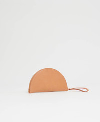 Shaped like a crescent, our Moon Wristlet is crafted from smooth, vegetable tanned Italian leather with a zip pull that doubles as a wrist loop. Its pop of color interior features a slim pocket for cash, credit cards, and the occasional bit of loose change. Details Width: 9 in / 23 cm Height: 5 in / 13 cm Depth: .7 in / 2 cm Composition: 100% Italian Vegetable tan Leather Lining: 100% Italian Lambskin Leather Made in Italy Materials Our Italian Vegetable Tanned Leather is a classic leather that shows its wear beautifully over time. It will not remain pristine and sleek, and although scratching will occur, we do not view these marks as defects. The patina created by daily wear-and-tear is meant to change and evolve over time.
