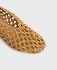 The Woven Ballerina offers a breathable, flexible fit that molds comfortably to your foot. With a cushioned sole for added comfort and a flexible vegetable tanned sole for support, this flat features a round toe and a simple, clean design. Available in multiple colors, it’s a versatile addition to any wardrobe. Details Heel Height: 0.40 in / 10 mm Toe Vamp: 3.5 in / 9 cm Composition: Woven Polyurethane Insole: 100% Italian Lambskin Leather Made in Portugal Sizing Please reference our Size Guide to find your size. Materials Our woven material is a breathable, braided textile crafted at a family owned mill in Spain. T o preserve its quality, avoid abrasive surfaces and keep away from water. For best results, have it professionally cleaned when necessary.