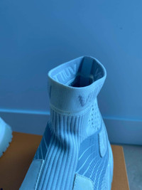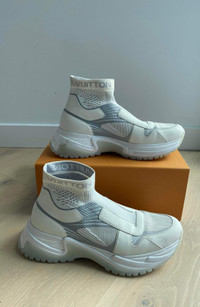 Louis Vuitton Runaway Pulse High Top Chunky Sneakers White Leather Graphic Print Round-Toes Includes Dust Bag Used once but in great condition. Small yellowing on the top of knit (sock) from storage. Size UK/LV 10.5 = 12 us