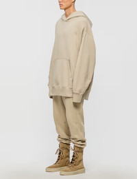 “Dune” colorway Constructed from a loopback cotton jersey and finished in a classic sporting style with a jersey lined hood, a kangaroo patch pocket, an elasticated ribbed knit to the collar, cuffs and hem and additional ribbed panels at the side seams and sleeves. Loopback interior Jersey lined hood Kangaroo pocket Elasticated and ribbed finishes Tonal stitching Made in Italy