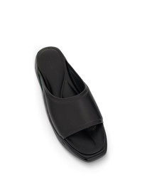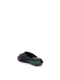 Mono slide in black/military green with leather blend construction, slip-on style, and metallic detailing - Composition: 100% Calf Leather, 100% Rubber - Brand’s logo detailing to the rear - Square toe - Moulded footbed SKU: AAMSL0004LE05