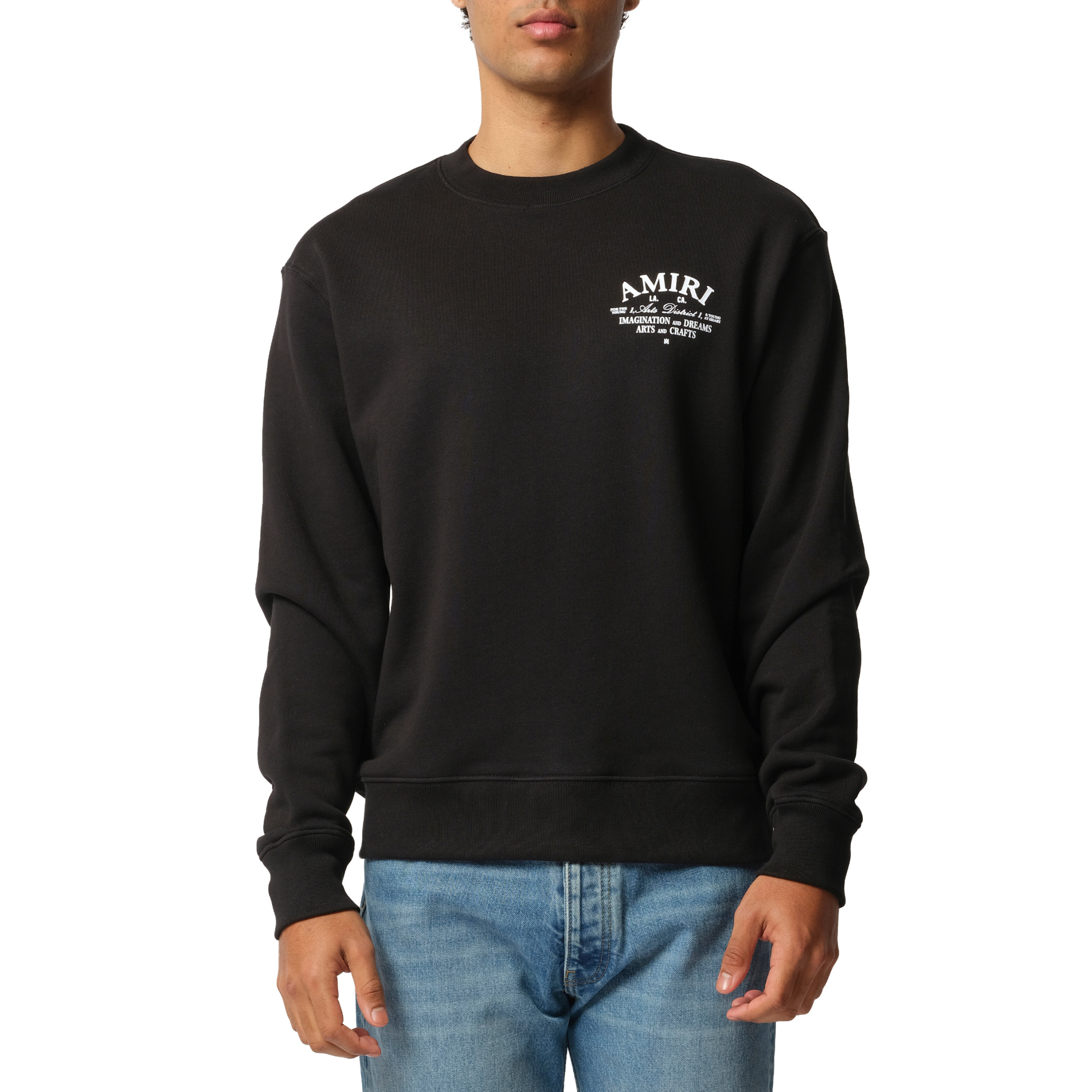 Stay cozy and stylish in the Amiri Arts District Sweatshirt. Crafted with premium black fabric, this sweatshirt features the iconic Amiri logo and a sleek design. Perfect for any occasion, elevate your wardrobe with this luxurious and versatile piece. - Composition: 100% Cotton - Relaxed easy fit - Logo at the chest - Long sleeve - Made in USA SKU: AMJYCW1037 001