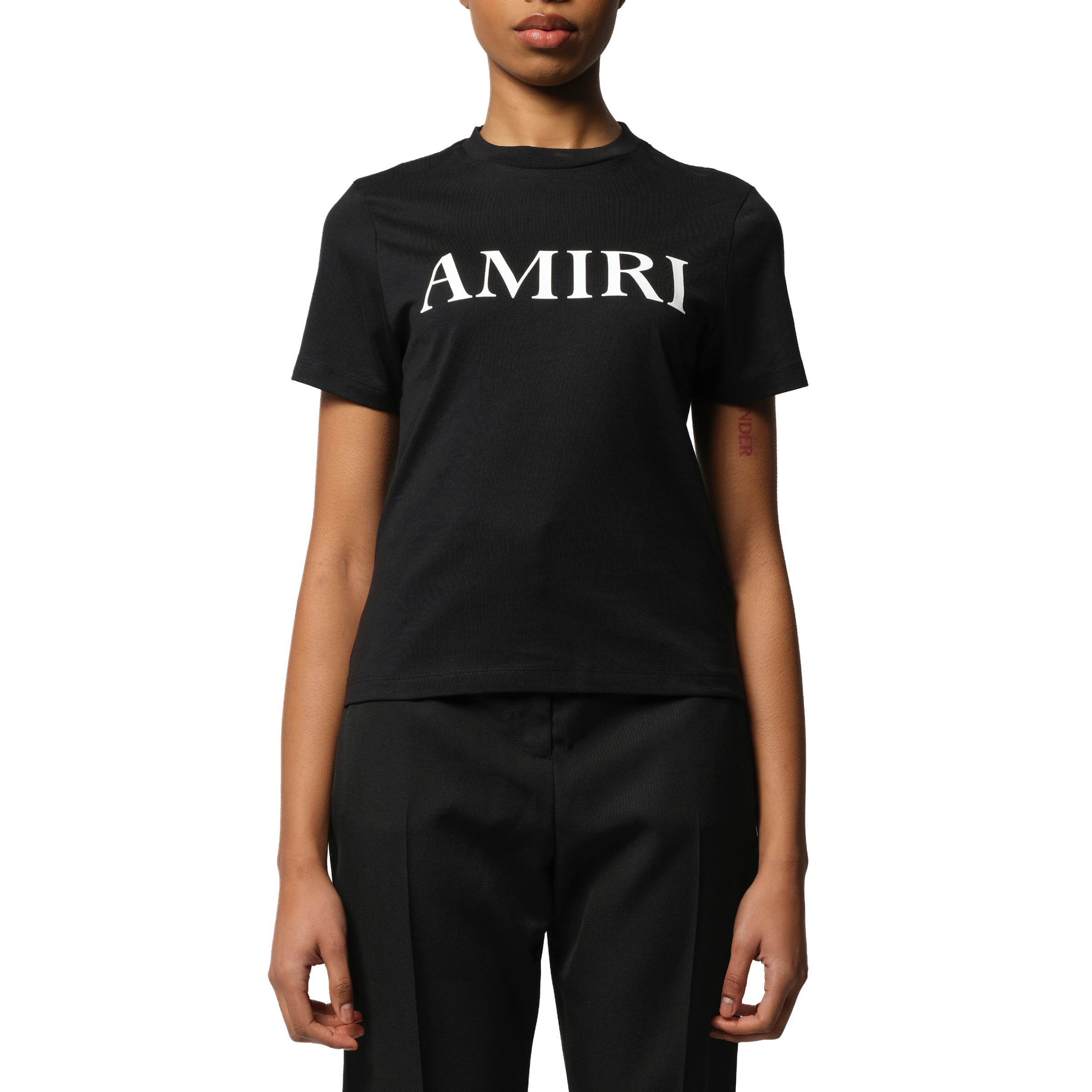 The Amiri Core Logo T-Shirt in Black offers a sleek and versatile addition to your wardrobe. Crafted with high-quality materials, this t-shirt features the iconic Amiri logo, adding a touch of fashion-forward style to any outfit. - Composition: 100% Cotton - Logo print to the front - Crew neck - Short sleeves - Straight hem - Made in Italy Model is 171 cm and wears size small SKU: AWJYTE1035 001